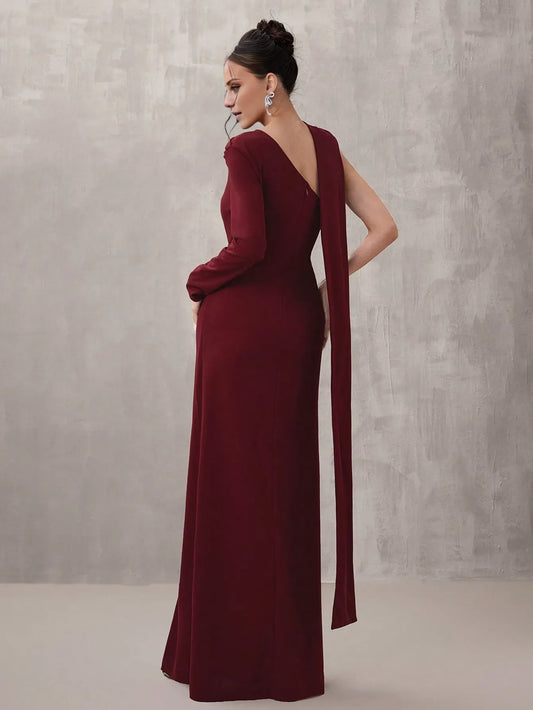 Elegant Sheath/Column One-Shoulder Drape Ruched High-Slit Maxi Dress Prom Dress