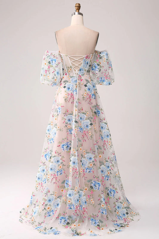 Amzcw Apricot Flower A-Line Off the Shoulder Long Corset Prom Dress prom dresses shops