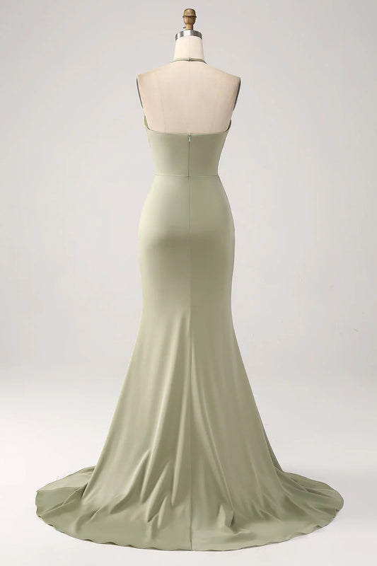 Amzcw Long Satin Bridesmaid Dresses with Silt for Wedding Formal Gowns Mermaid Prom Dress gowns evening dresses