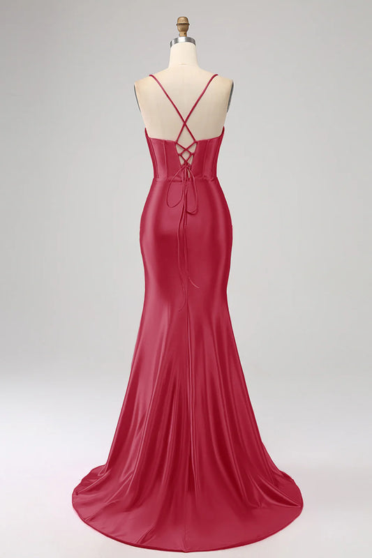 Amzcw Stunning Burgundy Mermaid Spaghetti Straps Corset Prom Dress with Split Front prom dresses shops