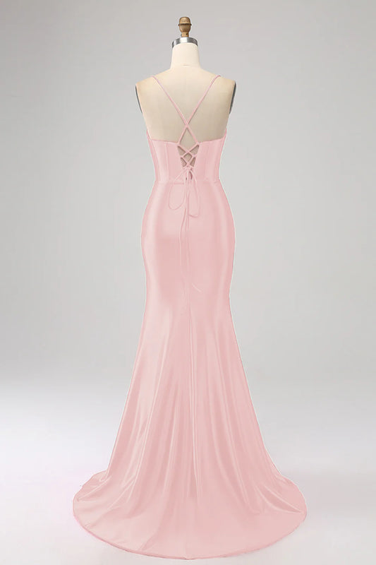 Amzcw Stunning Blush Pink Mermaid Spaghetti Straps Corset Prom Dress with Split Front prom dresses shops