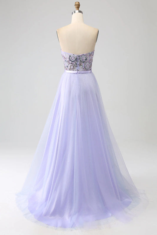 Amzcw Lilac A Line Tulle Sparkly Sequin Corset Prom Dress with Slit prom dresses shops