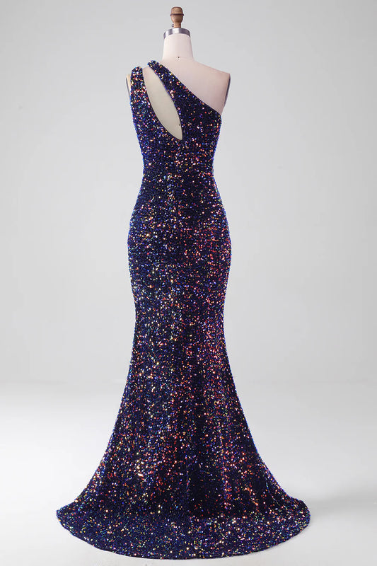 Amzcw Black Mermaid One Shoulder Sequins Long Prom Dress with High Slit prom dresses shops