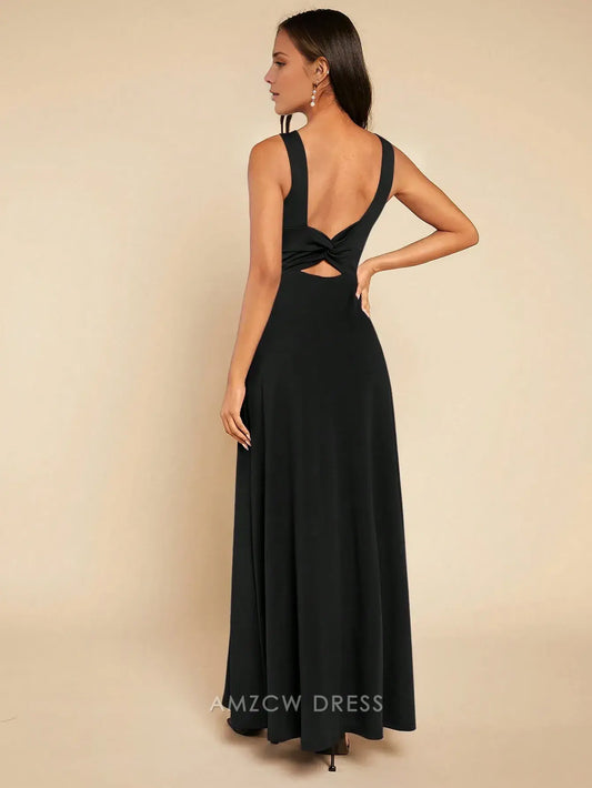 Elegant Mermaid/Trumpet Sleeveless Crew Neck Twist Cutout Back Maxi Dress Prom Dress