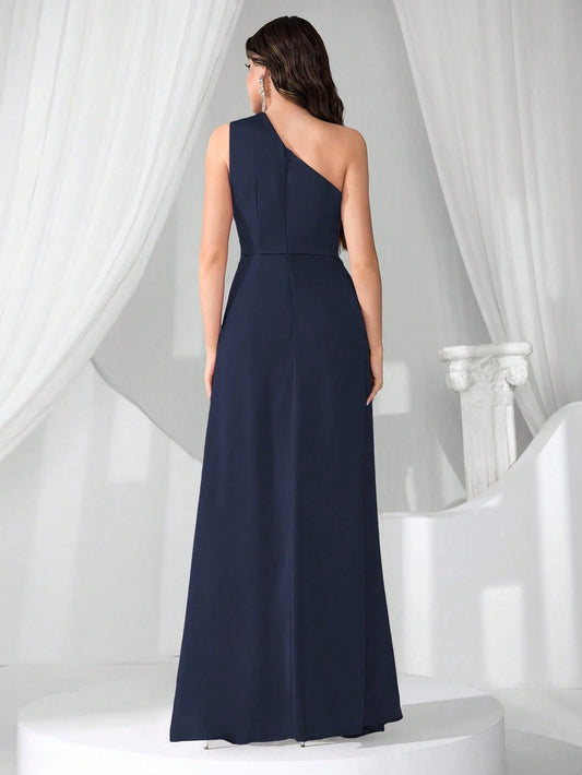 Elegant Sheath/Column One-Shoulder Sleeveless Ruched Side Slit Maxi Dress Prom Dress