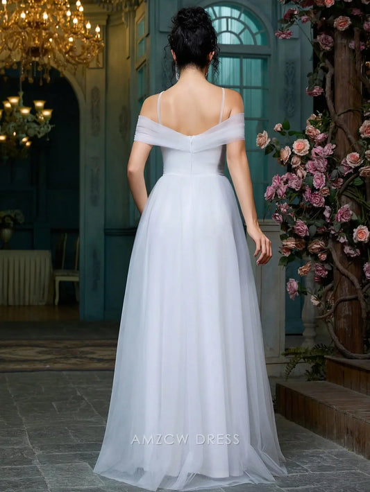 Elegant Off-Shoulder Spaghetti Strap Tulle Ballgown Maxi Dress Prom Dress