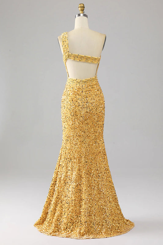 Amzcw Mermaid Sequins One Shoulder Golden Prom Dress with Slit prom dresses shops