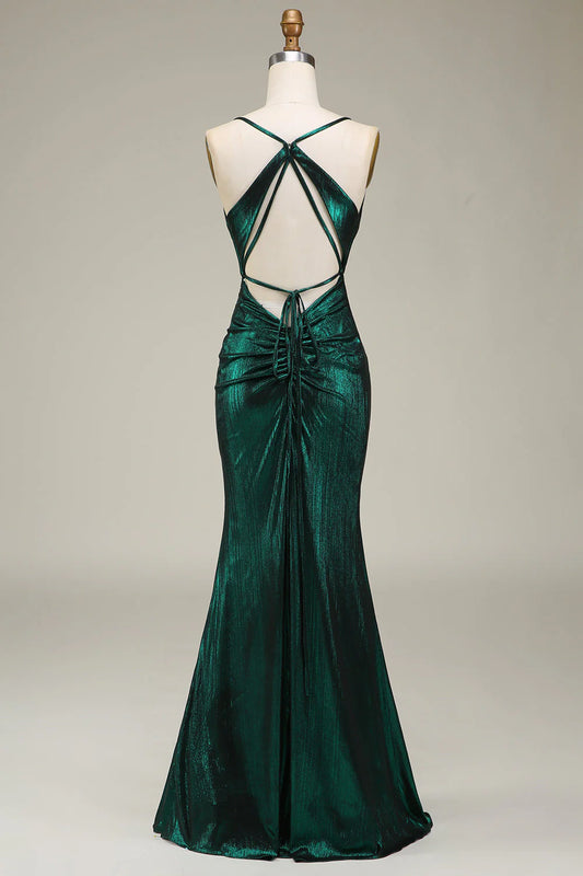 Amzcw Dark Green Mermaid Spaghetti Straps Long Prom Dress with Open Back prom dresses shops