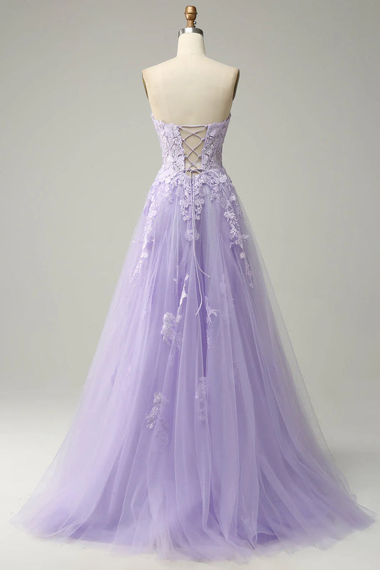 Amzcw Lavender A Line Sweetheart Tulle Long Prom Dress with Appliques prom dresses with long sleeves