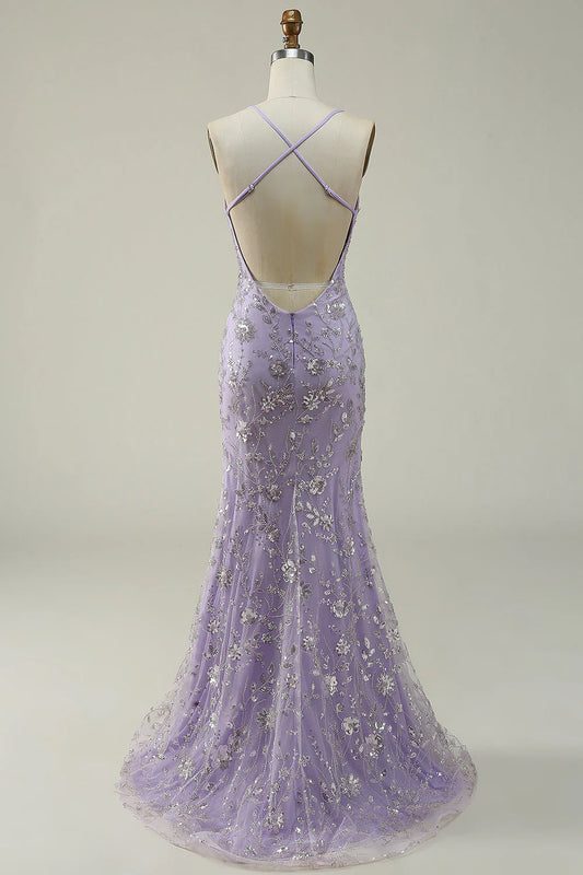 Amzcw Sparkly Mermaid Lilac Spaghetti Straps Long Prom Dress