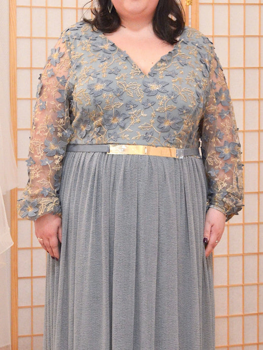 Plus Size V Neck Long Sleeves Floor Length Mother Of The Bride Dresses