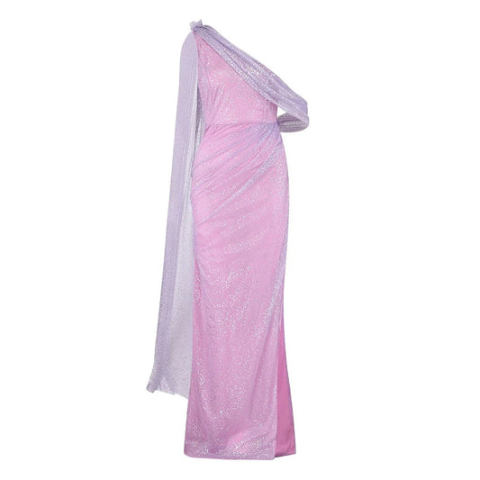 Vestidos de fiesta de un solo hombro con cordones en la espalda, lentejuelas y cuentas