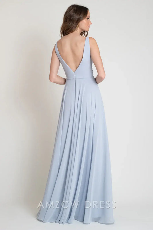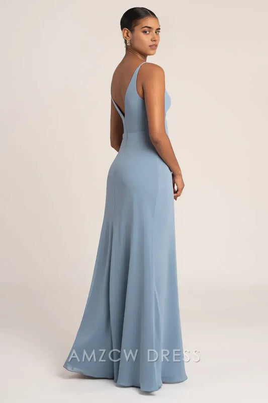 Elegante vestido largo de gasa con escote en V y falda plisada de Amzcw: elegancia sin esfuerzo para ocasiones formales.
