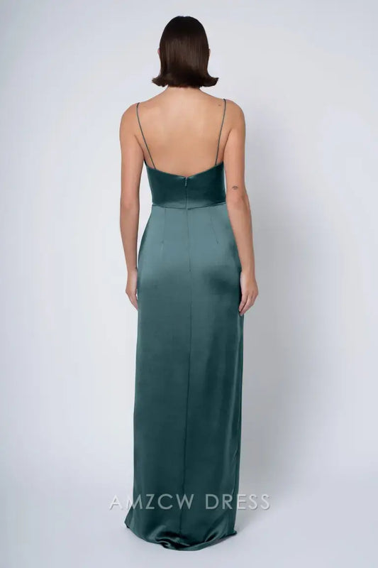 Elegante vestido de satén Amzcw con cuello halter y abertura lateral: silueta elegante para ocasiones memorables.