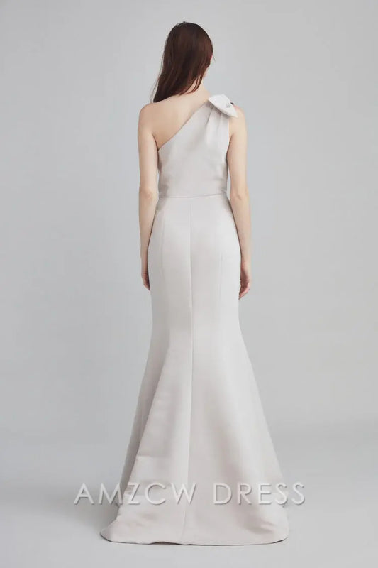 Elegante vestido de sirena Amzcw con un hombro descubierto y lazo: sofisticación chic para ocasiones formales.