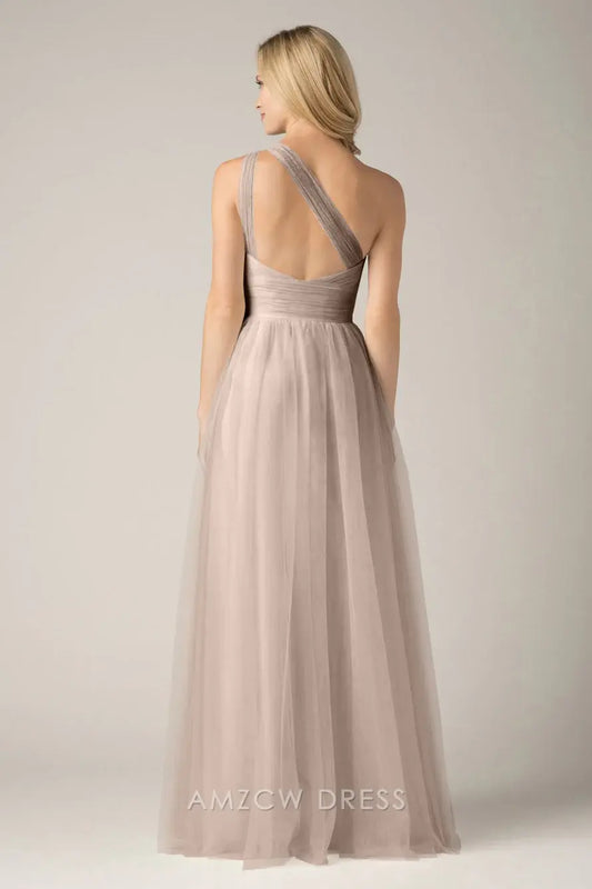 Vestido elegante de dama de honor de tul con un solo hombro de Amzcw - Vestidos formales para mujer en tono ruborizado