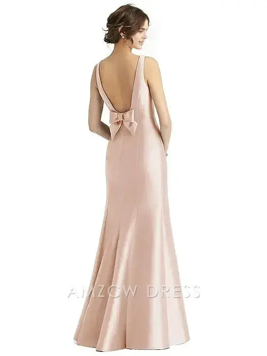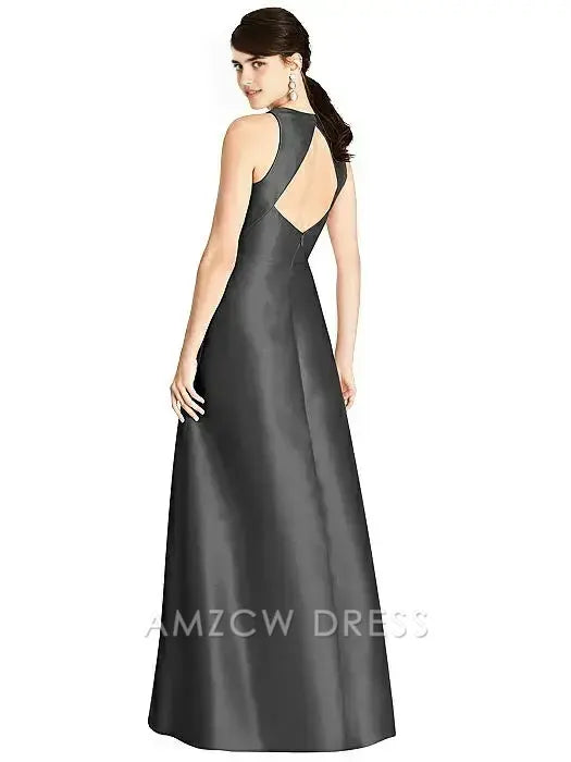 Elegante vestido largo de satén sin mangas Amzcw: Elegancia atemporal para reuniones formales