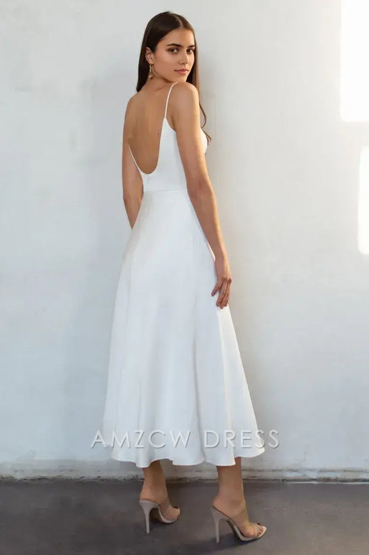 Vestido lencero elegante de satén con cuello recto de Amzcw: Elegancia sin esfuerzo para cualquier ocasión
