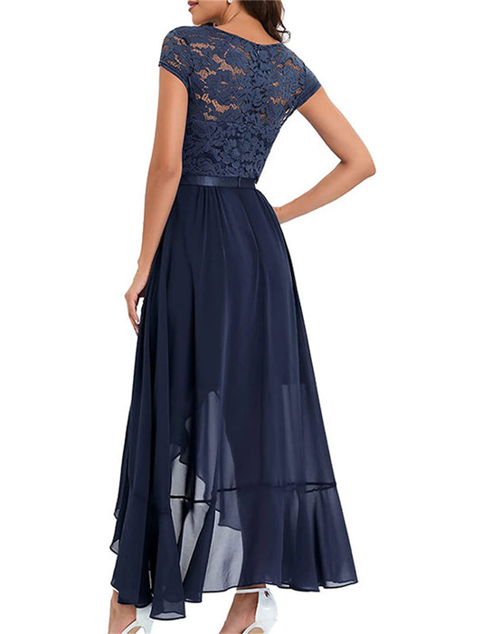 Vestido de fiesta para mujer, vestido de encaje, vestido de regreso a casa, vestido largo, vestido maxi, negro, rosa, rojo, manga corta, color puro, encaje, verano, primavera, cuello en V, fiesta, boda, invitada, vacaciones, vestido de verano