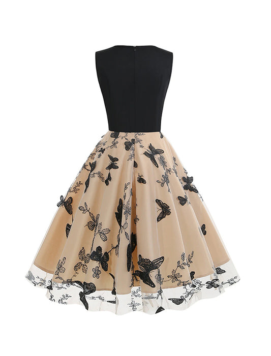 Vestido vintage de presagio, vestido de fiesta, vestido de regreso a casa, vestido midi, negro, rojo, caqui, sin mangas, floral, malla, primavera, otoño e invierno, cuello en V, vintage, para Navidad, boda, invitada, cumpleaños.