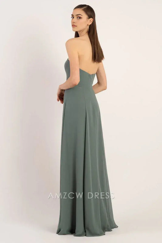 Vestido elegante de gasa verde esmeralda sin tirantes de Amzcw: vestido largo fluido con abertura alta, vestidos formales