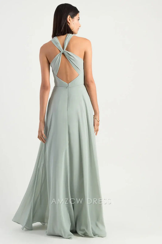 Vestido elegante de gasa color menta claro Amzcw con cuello halter, cintura alta, holgado y con lazo en el cuello. Vestidos formales.