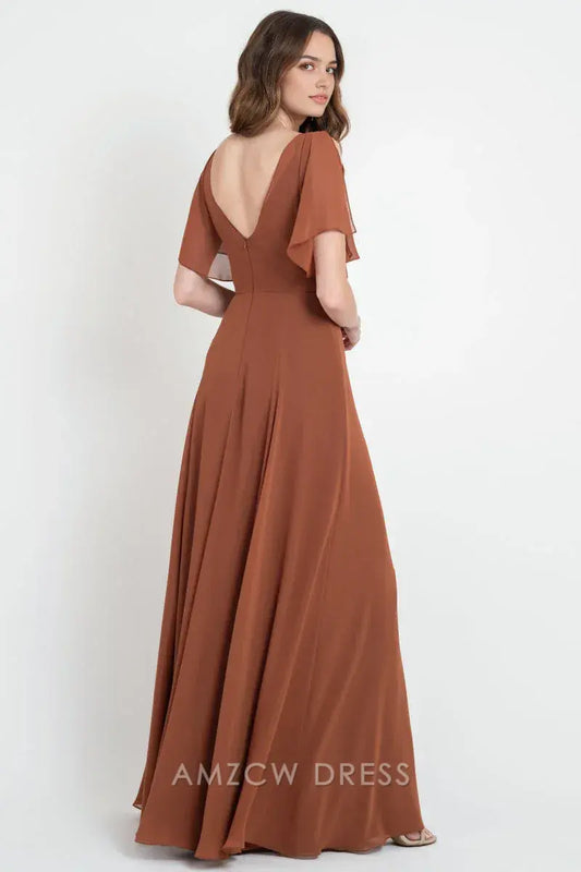Vestido cruzado elegante de gasa color óxido de Amzcw con mangas murciélago en V profundo, abertura lateral, vestido largo fluido para ocasiones formales