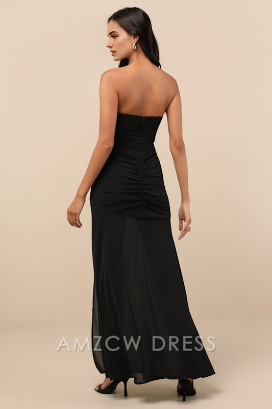 Vestido largo elegante, ajustado y sin tirantes, de Amzcw, en técnica mixta negra, para uso formal