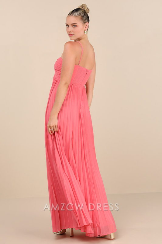 Vestido largo elegante Jolette rosa coral con nudo frontal plisado Amzcw para ocasiones formales