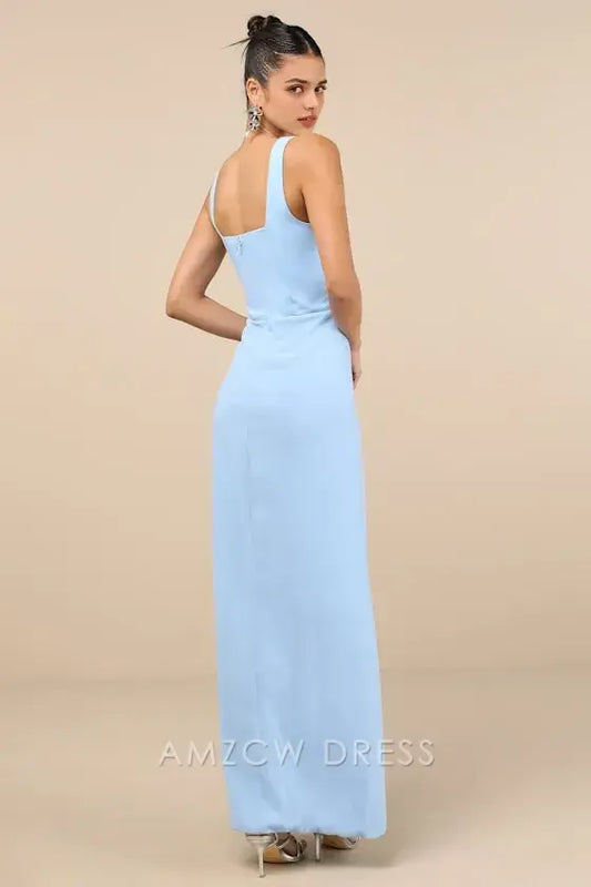Vestido largo fruncido azul claro elegante y glamoroso de Amzcw. Vestidos formales.