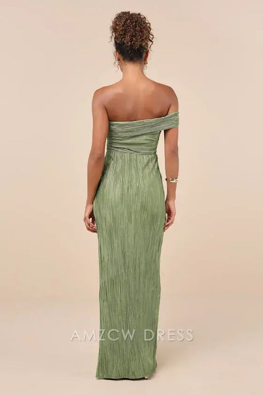 Vestido largo verde oliva plisado de un solo hombro, elegante y elegante, de Amzcw, para ocasiones formales