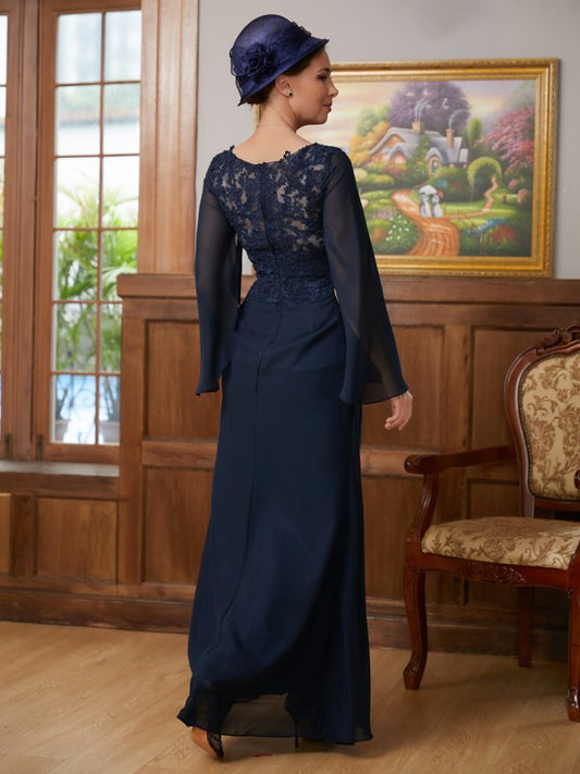 Vestidos para madre de la novia de corte A/princesa, de gasa, con apliques, escote en V, mangas largas y largo hasta el suelo