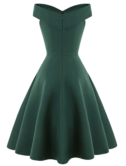 Vestido de cóctel de los años 50, vestido vintage, vestido de corte A, vestido de tarde, vestido acampanado, disfraz de Audrey Hepburn con hombros descubiertos para cosplay, vestido de corte A para San Valentín, regreso a casa, fiesta de bodas.