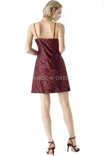 Amzcw Elegante vestido burdeos con lentejuelas, corte A, vestidos formales