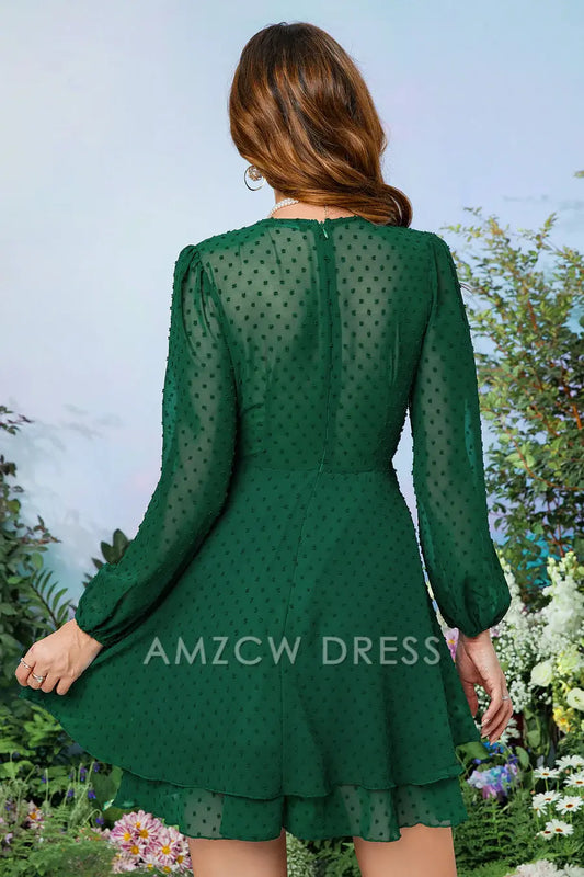 Amzcw Elegante vestido de fiesta verde oscuro con mangas largas y estampado cruzado, vestidos formales