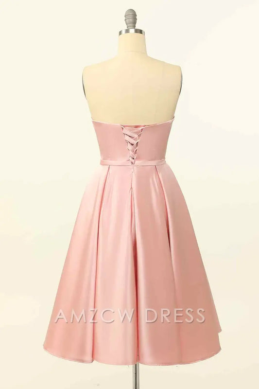 Vestido corto elegante de satén rosa con espalda descubierta y corte en A Amzcw para fiesta de bienvenida, vestidos formales