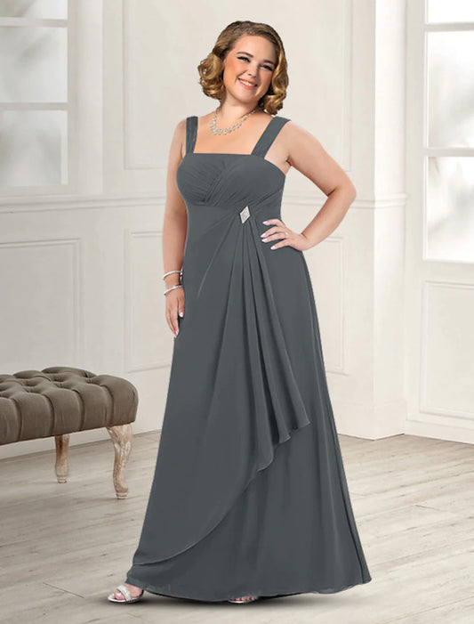 Vestido de madre de la novia de dos piezas, corte A, talla grande, elegante, escote cuadrado, largo hasta el suelo, de gasa, sin mangas, con chaqueta y pliegues