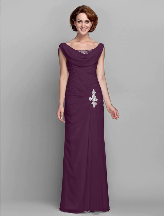 Vestido de madre de la novia de estilo tubo/columna, de inspiración vintage, cuello vuelto, largo hasta el suelo, de gasa, sin mangas, con botones y cristales entrecruzados.