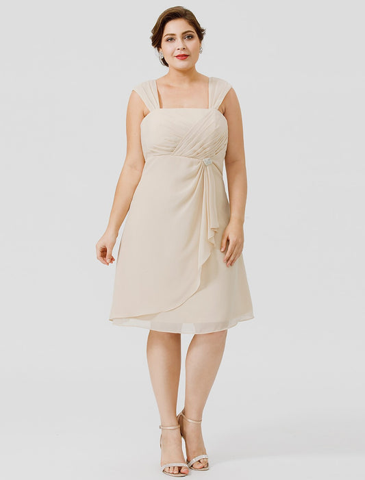 Vestido de madre de la novia con corte tubo/columna, sencillo, elegante, escote redondo, largo hasta la rodilla, de gasa, media manga con faja/cinta plisada.