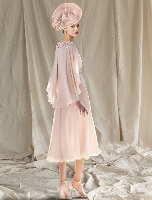 Vestido de dos piezas de corte A para madre de la novia, para invitada de boda, iglesia, elegante, cuello en V, largo hasta la rodilla, de gasa, sin mangas, cruzado, incluido con apliques
