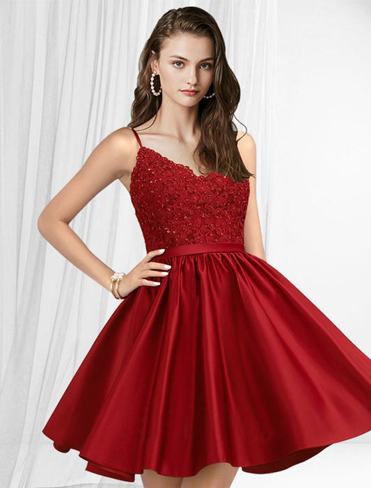 Vestidos de cóctel de corte A, minimalistas, para fiesta, cortos/mini, sin mangas, escote en V, de satén, elegantes