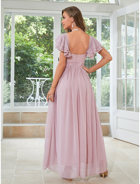 Vestidos de novia de corte A, elegantes vestidos de fiesta, largos hasta el suelo, mangas cortas, escote cuadrado, de gasa con volantes