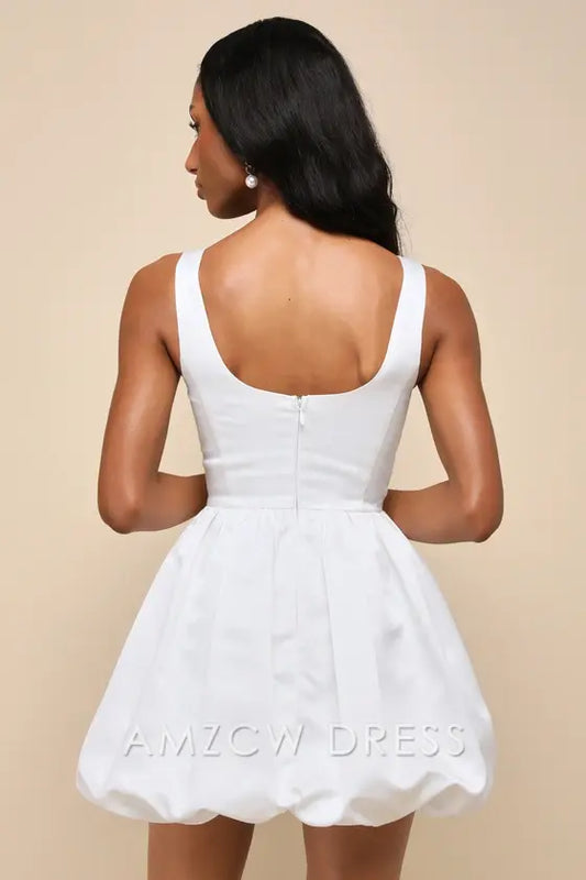 Vestido mini de satén blanco con escote cuadrado y dobladillo abullonado de Amzcw Regal Cutie, vestidos formales
