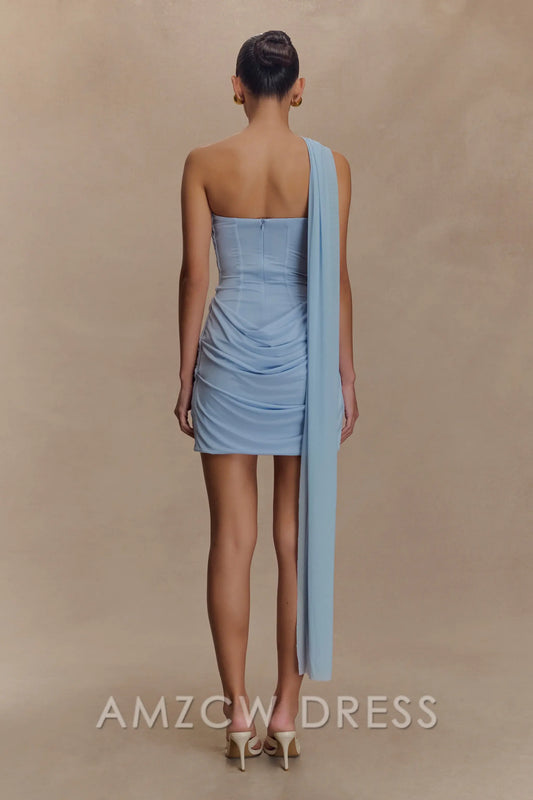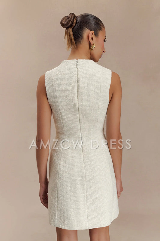 Vestido mini elegante de bouclé con pliegues Amzcw para ocasiones formales - Blanco