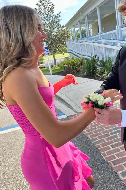 Vestido de fiesta largo con volantes y tirantes finos en color rosa de Amzcw
