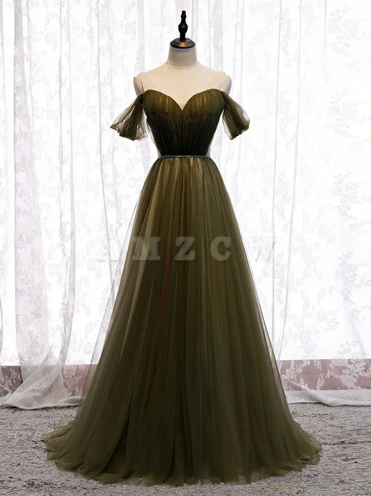 Amzcw Vestido de fiesta largo de tul verde con escote corazón sencillo, vestido de noche verde, tiendas con vestidos de fiesta