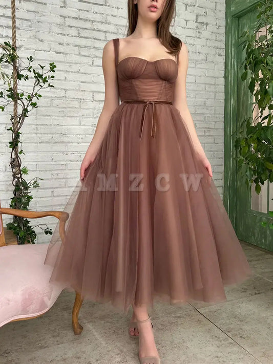 Vestidos de fiesta marrones sencillos Amzcw Aline hasta la rodilla, vestidos de fiesta marrones, vestidos de fiesta en tienda