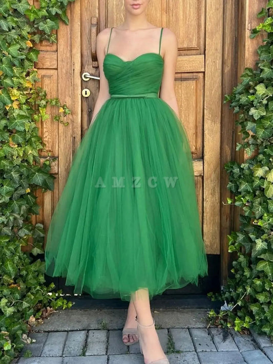 Amzcw Vestido de fiesta sencillo de tul verde hasta la rodilla, vestido formal de tul verde, vestido de fiesta en tienda
