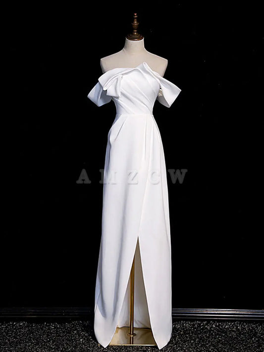 Vestido de fiesta largo de satén blanco con hombros descubiertos de Amzcw, vestido formal largo blanco, vestido de fiesta en tienda