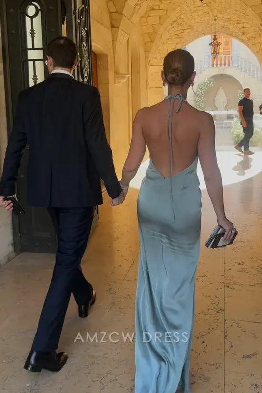 Amzcw Elegantes Vestidos de Fiesta Línea A Satén Verde Azulado con Hombros Descubiertos Mini Vestido Corto Venta Caliente para Mujeres